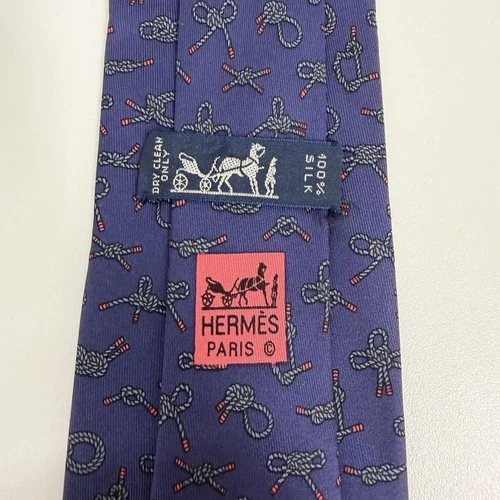 Hermes Men's Tie Nautical Rope Knots Purple/Red Silk 7321 EA 3.25" (W) x 56" (L)