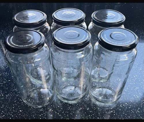 900ml Clear Glass Food Storage Jar With Black Lids x 6
