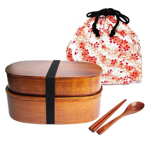 KXLCGYK Magewappa Bento Box, Two-Tier, 1000ml, Lightweight, with Drawstring Bag,