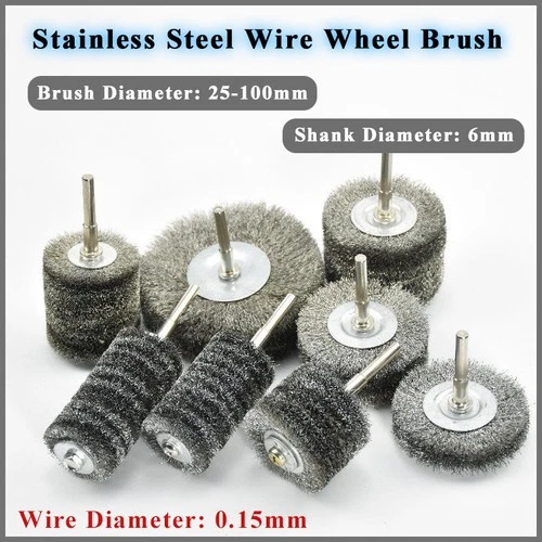 Stainless Steel Wire Wheel Brush for Die Grinder Drill Rotary Tool 6mm Shank