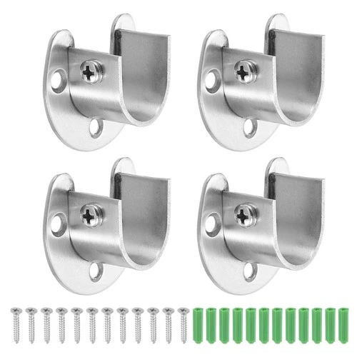 4Pcs 22mm/ 7/8" Closet Rod Bracket Steel U-Shaped Socket Flange Rod Holder
