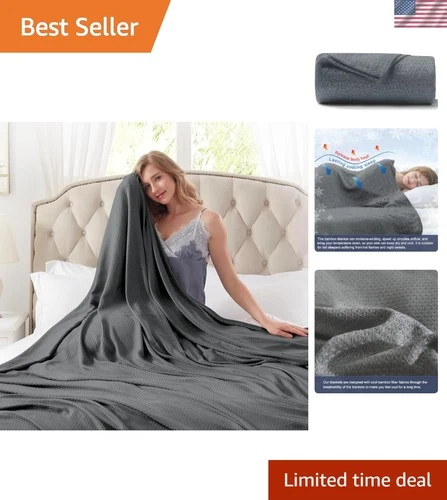 Luxury Lightweight Cooling Blanket, 79x91 Inches, Classic Diamond Design in Grey