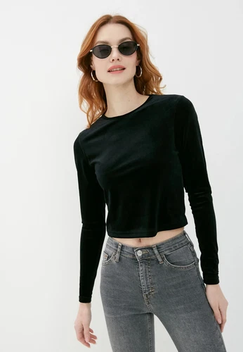 Topshop Womens Size 8-10 Top Cropped Velvet Crew Neck Long Sleeves