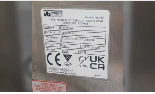 PRINCE CASTLE 297-T9FGB SLIMLINE BUN TOASTER, DOM 04/2022, HARDLY USED £1795+VAT