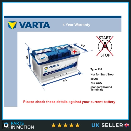 Battery fits CITROEN RELAY 2.2D 2006 on Varta 110 740A 80Ah 4Yr Warranty Quality