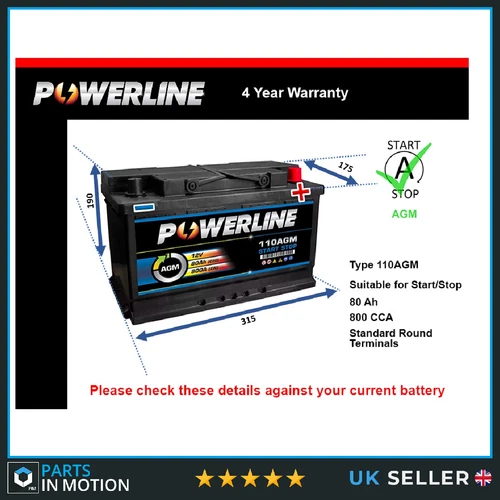 AGM Car Battery fits JEEP RENEGADE WRANGLER COMPASS CHEROKEE 2007 on Stop Start