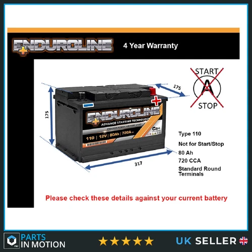 Battery fits CITROEN RELAY 2.2D 2006 on 110 720A 80Ah 4Yr Warranty 317x175x175