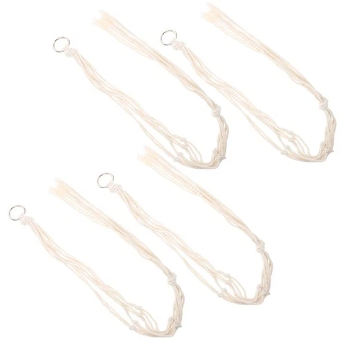 4 Pcs Indoor Macrame Plant Hangers White Cotton Wood Plant Holders