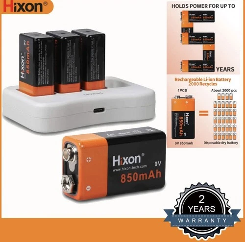 Hixon 9V Rechargeable Lithium Batteries 6F22 9 Volt Li-ion Battery Block 850mAh