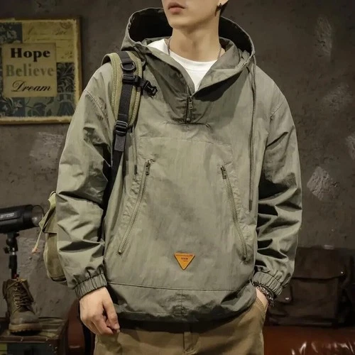New Outdoor Workwear Hooded Jacket Loose-Fit Japanese Half Zipper Spring Autumn