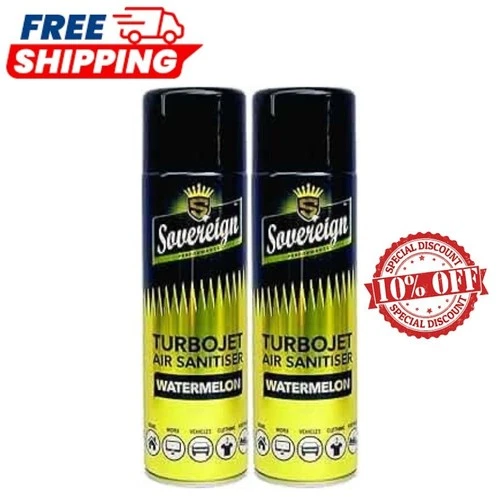 2 X SOVEREIGN WATERMELON TURBOJET AIR SANITISER CAR HOME FRESHENER SPRAY. 500ML
