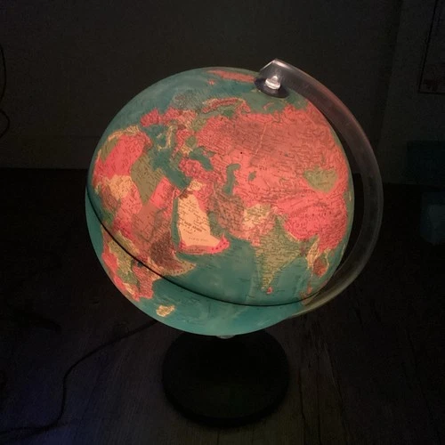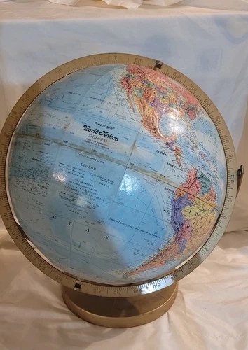 Vtg Rand McNally Light-up Lighted World Globe Lamp Physical Political 12" 1982