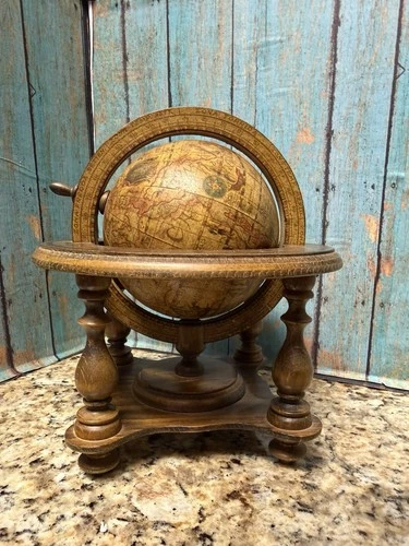 Old World Zodiac Italian Wooden Table Top Globe Made in Italy 10"