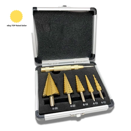 Step Drill Bits Set 6PCS High Speed Steel Titanium Coated Cobalt Cone Step Dril
