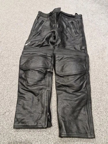 FRANK THOMAS Black Leather Motorcycle Trousers Motorbike Pants UK 12 EUR 38