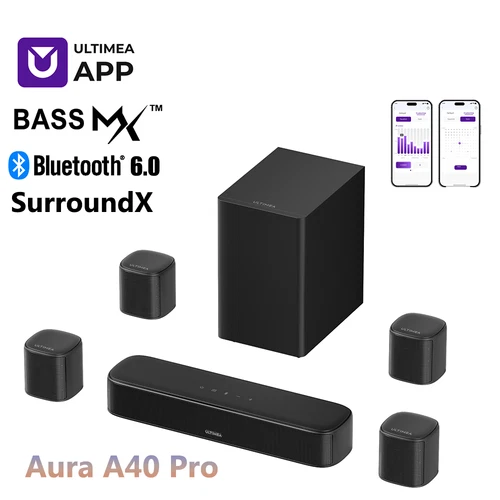 ULTIMEA Aura A40 Pro 7.1ch Surround Sound Bar w/ 4 Surround Speakers & Subwoofer