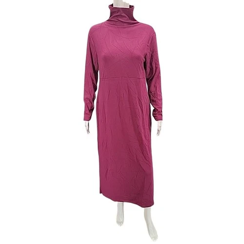 Women with Control Tummy Control Mock Neck Midi Dress Medium Tall Size Berry