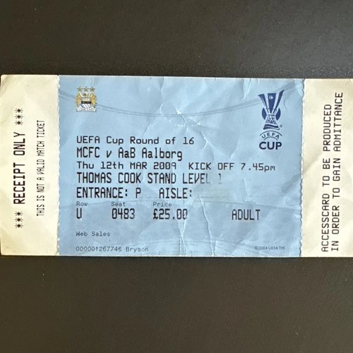Manchester City v Aab Aalborg(UEFA Cup 4th Round 2008/09)12/3/2009 Match Ticket