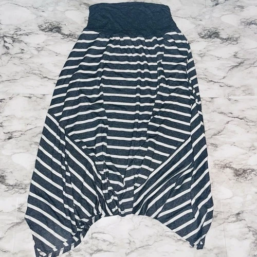 AB Studio Skirt Striped Maxi Asymmetrical Grey/White Fold Over Waist Women M