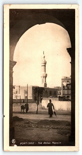 1920s PORT-SAID EGYPT THE ABBAS MOSQUE STREET VIEW RPPC POSTCARD P1631