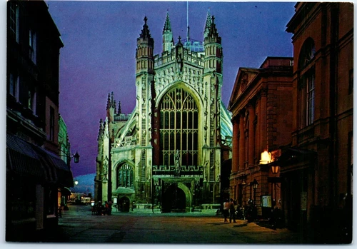 Postcard - Floodlit view of the Abbey & the Pump Room - Bath, England