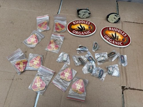 Job Lot Of Abbot Ale Etc Pump Badges Key rings And Pin Badges Unused Old Stock