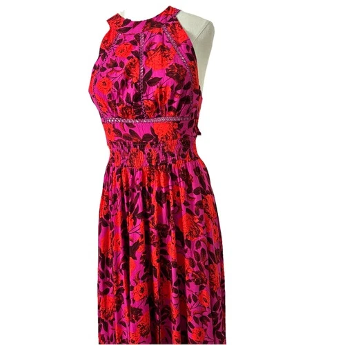 Anthropologie Abel The Label Purple Reign Open Back Halter Floral Maxi Dress S