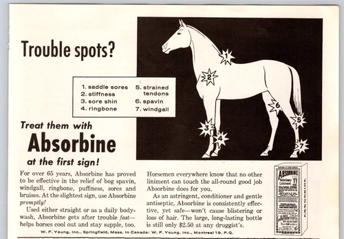1960 Advertising Print Ad W F Young Springfield MA Absorbine Trouble Spots Horse