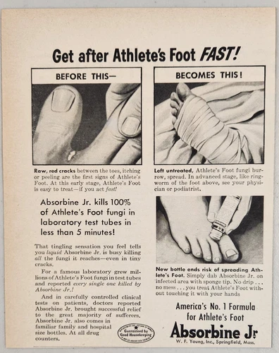 1959 Print Ad Absorbine Jr. for Athlete's Foot Kills 100% of Fungi