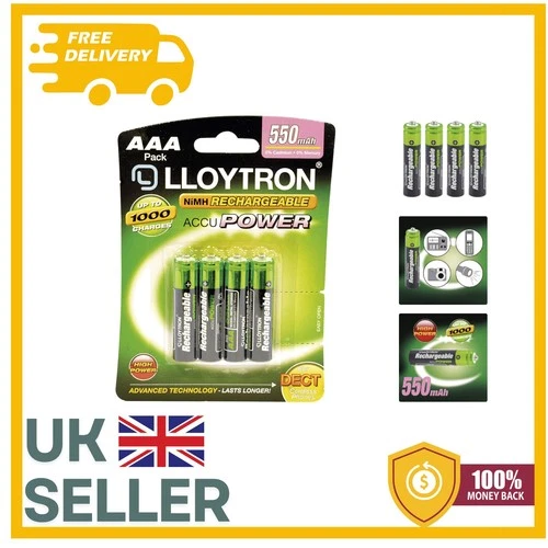 LLOYTRON NiMH Rechargeable AccuPower Batteries / AAA Size 550mAh (4 Pack)