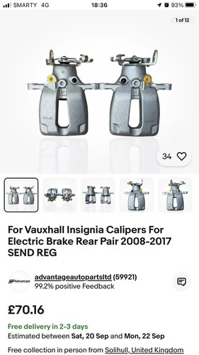 Vauxhall Insignia 08-17 Rear Callipers Electric Handbrake