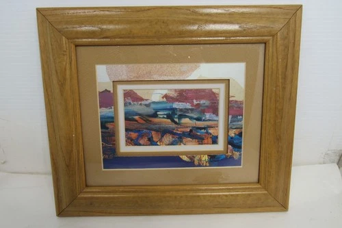 Vintage QA Original Abstract Painting Mexico 13" x 11" Frame Nice Condition