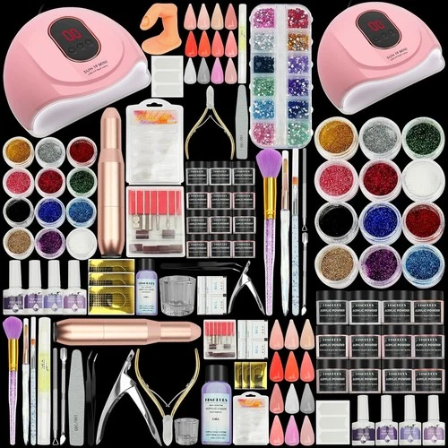 Acrylic Nail Kit Full Set Drill UV lamp 12 Colour Powder Liquid Starter kit