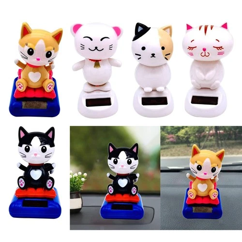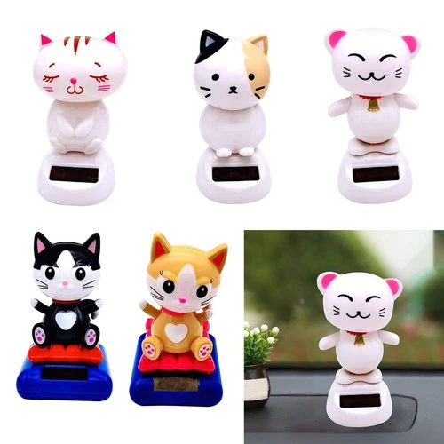 Bobblehead Toy Automatic Ornament Cat Shape Solar Powered for Dashboard Kids
