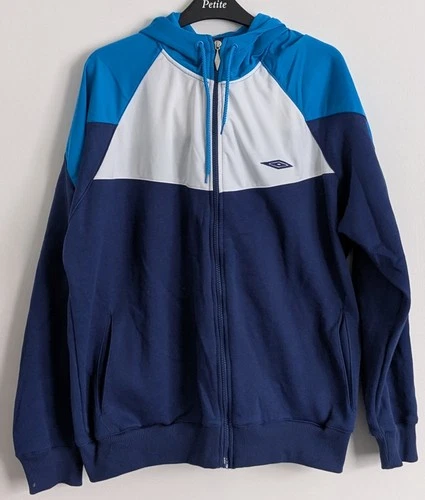 L Vintage 1990's Umbro Blue & White Colourblock Hooded Tracksuit Jacket