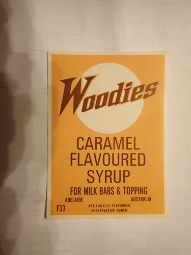 WOODIES CARAMEL FLAVOURED SYRUP FLAVOURED LABEL ORIGINAL UNUSED ADELAIDE SA
