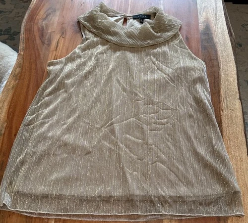 Adiva Women’s Champagne Flowy Gold Sparkly Top Dress Blouse Sleeveless SZ Large