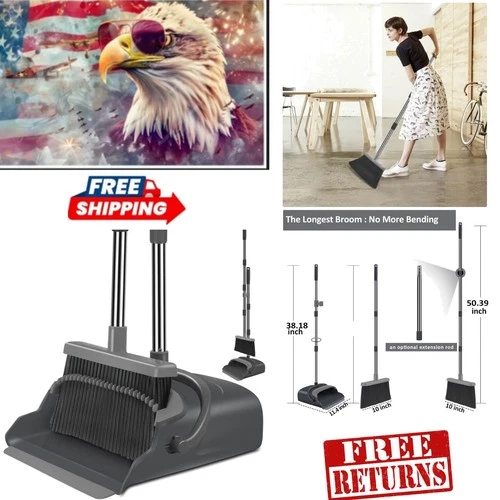 Eco-Friendly Broom and Dustpan Set - Extendable Height for Effortless Cleaning