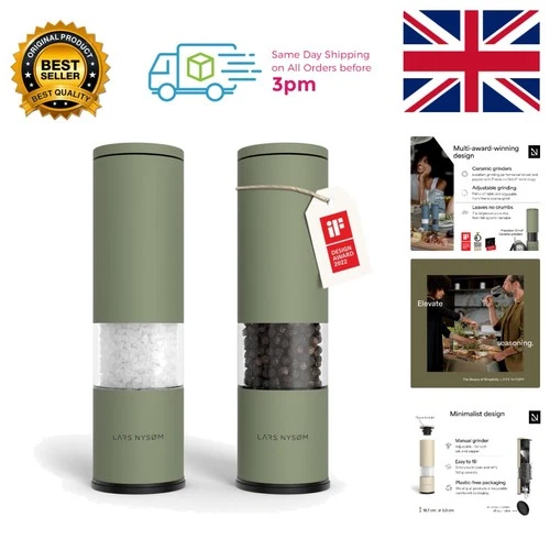 High-Quality Manual Salt and Pepper Grinder Set - Sage Green and Stainless Steel
