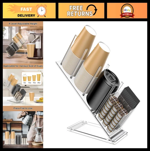 Adjustable Acrylic Cup Holder with Lid & Straw Organizer, 5-Compartment Dispense