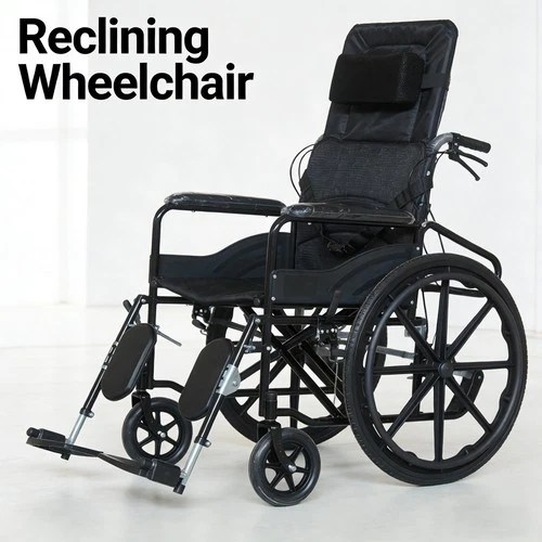 Lightweight Reclining Wheelchair Adults Transport Folding Adjustable Headrest UK