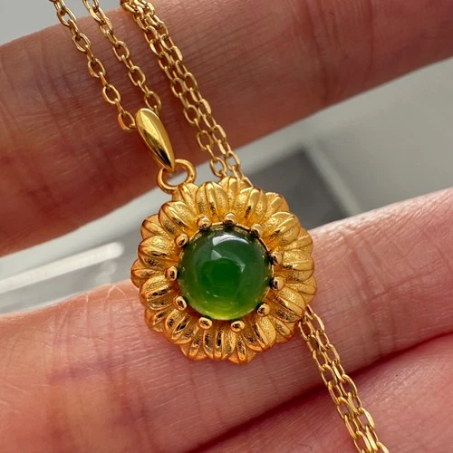 925 Sterling Silver Necklace 6mm Natural Emerald Gemstone Daisy Pendant Jewelry