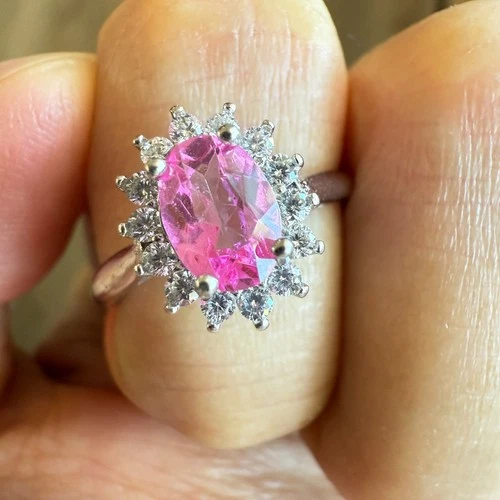 925 Sterling Silver Ring Oval Pink 7x5mm Natural Topaz Gemstone Women Bridal