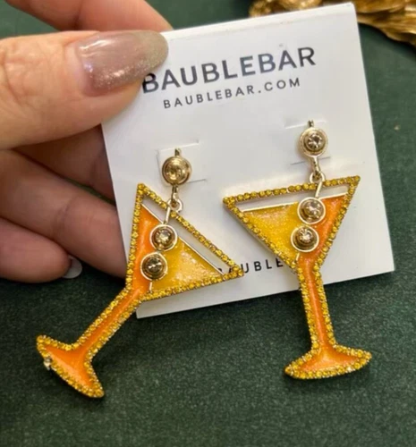 NEW Baublebar Enamel & Crystal Martini Cocktail Drop Earrings