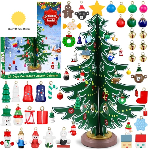 Christmas Advent Calendar 2025, 24 Days Countdown Surprises Tabletop Wooden Chr