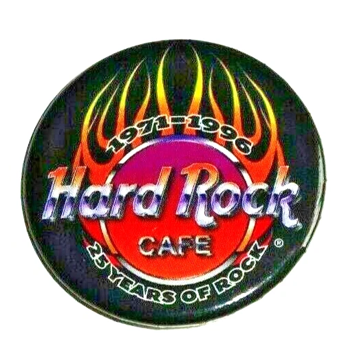 Hard Rock Cafe Pin Badge - 25 Years Of Rock, Vintage Flame Design, 1990s, 3.5cm