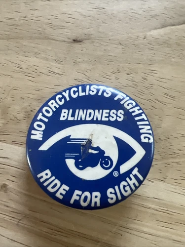 Vintage Motorcyclists Fighting Blindness Ride for Sight Promo Pin Badge