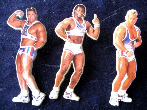 GLADIATORS vintage 1993 LWT Television TROJAN COBRA & PANTHER pin BADGES