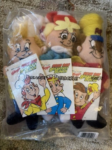 SNAP CRACKLE POP Brand New Plush Figures BEANIE BREAKFAST BUNCH Kellogg's Rice