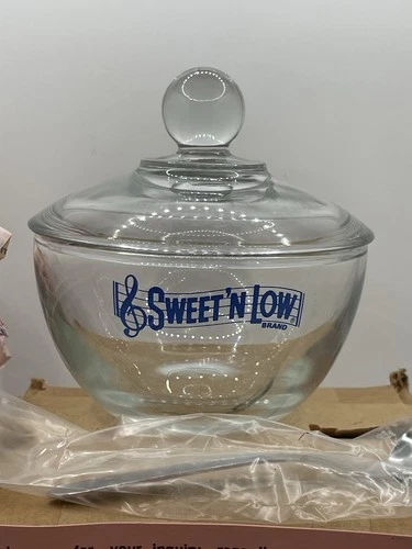 VTG Sweet N Low Brand Anchor Hocking Glass Sugar Bowl W/ Knob Lid Brand New